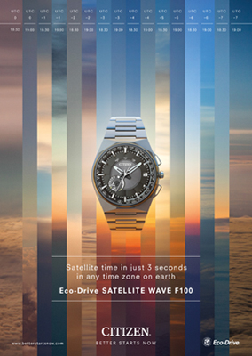 Citizen announced its 2014 flagship model Eco-Drive SATELLITE WAVE F100 with the latest satellite-synchronized technology at Baselworld 2014. No matter where you are on earth, it adjusts to the current time zone and receives time signal from a navigation satellites in just three seconds *. Demonstrating the watch’s unique ability Citizen undertook an ambitious experiment to “race against time”, to chase the horizon, an endeavor to live in the same hour for as long as humanly possible.
