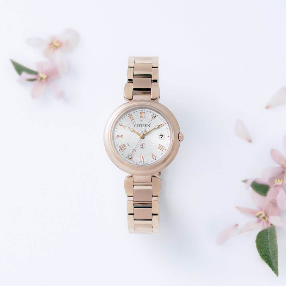 映襯櫻花粉紅色的精緻錶殼,