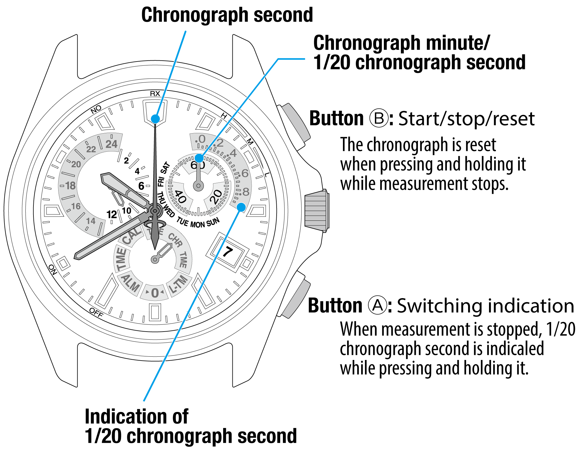 - Rotate the crown to set the mode hand to “CHR”.