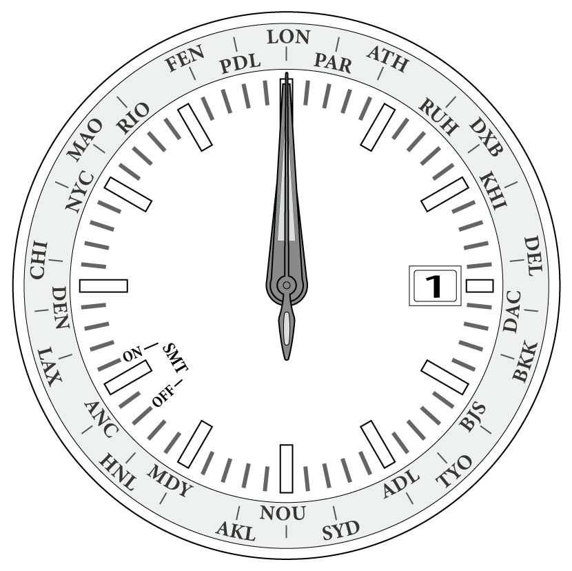 - Rotate the crown to set the hour and minute hands to 0 hours 0 minutes.