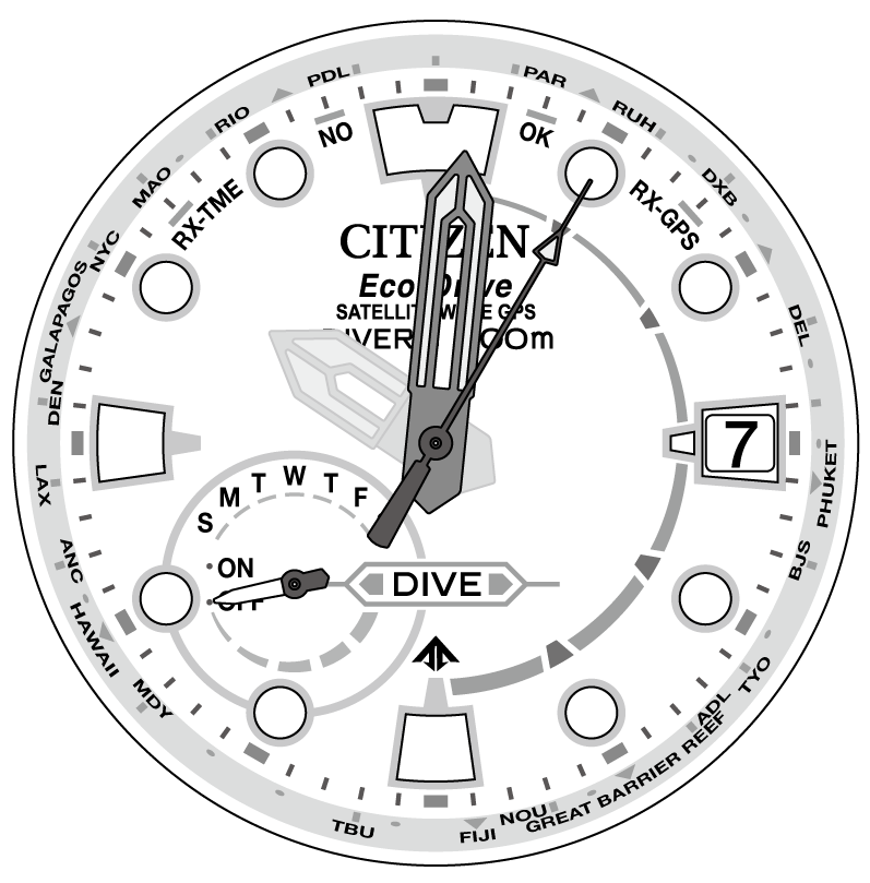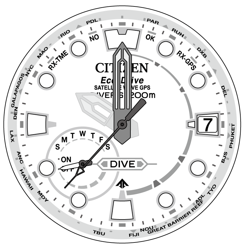 When the leap second setting is “‒37 seconds”: The hands point to “0 minute 37 seconds”.