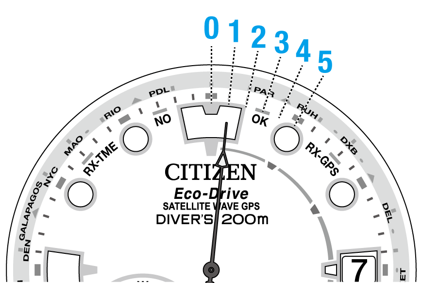 Using the “0:00:00” position as the starting point, the minute and second hands indicate the leap second setting.
