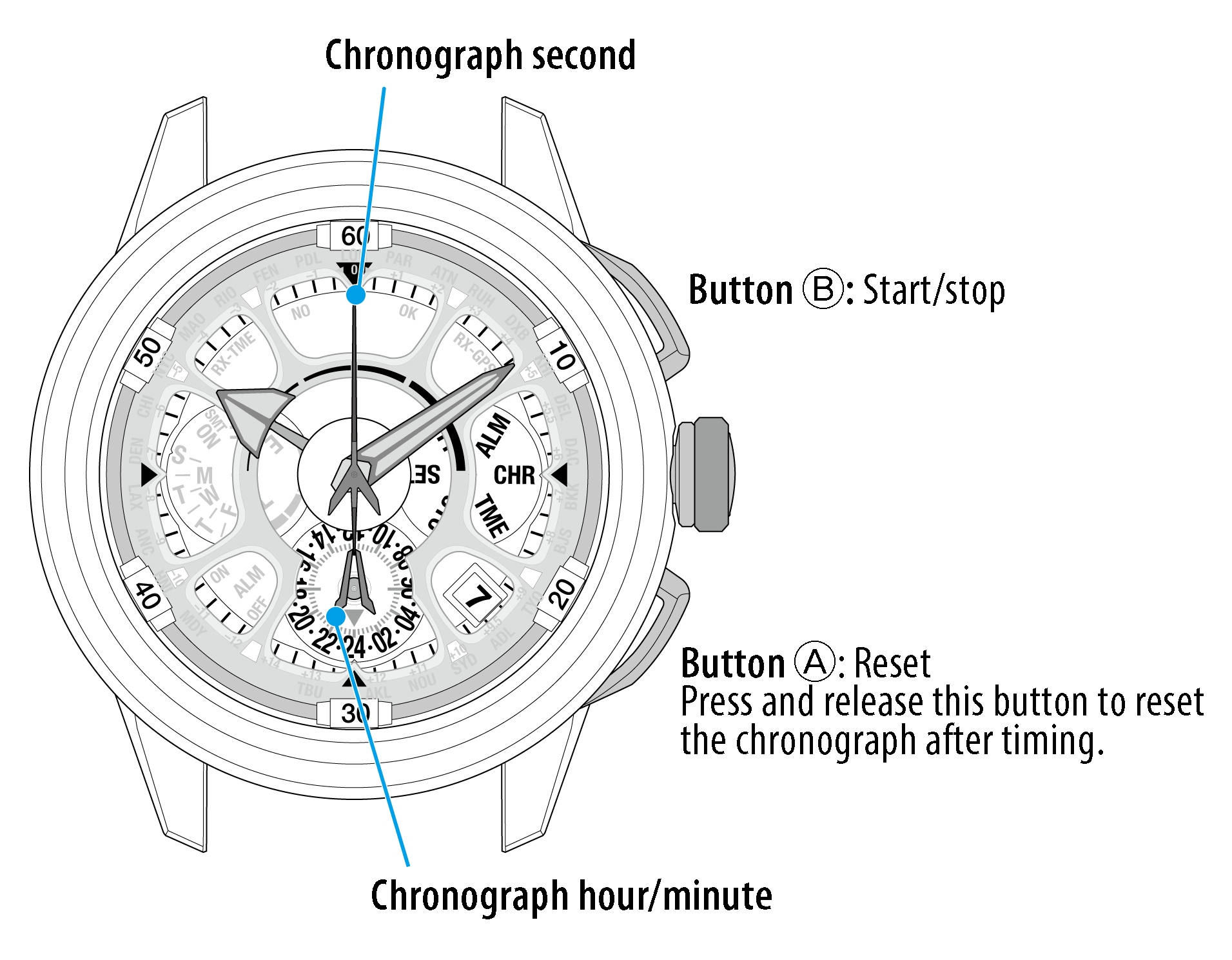 - Rotate the crown to set [CHR] on the mode indication to the ◀ marker.