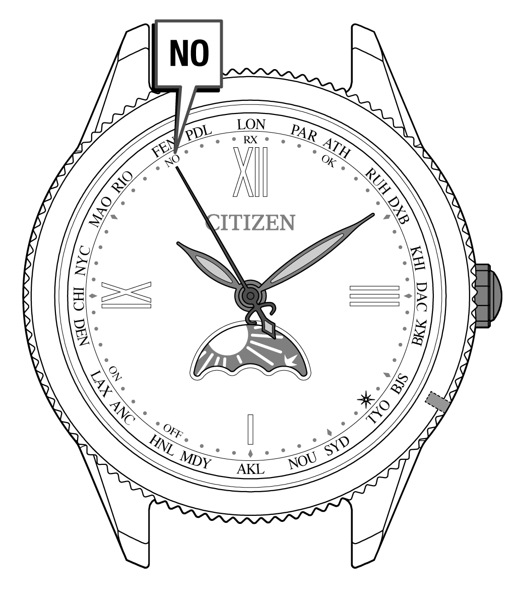 If you had operated the crown after the previous signal reception, the second hand points “NO” regardless the reception result.