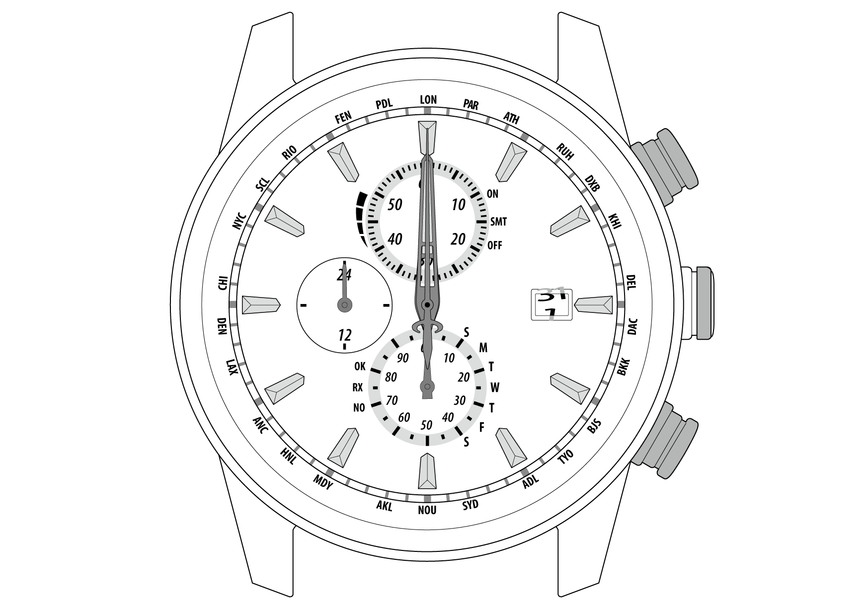 - Reference position is the base position of all hands and calendar to properly indicate the various functions of this watch.