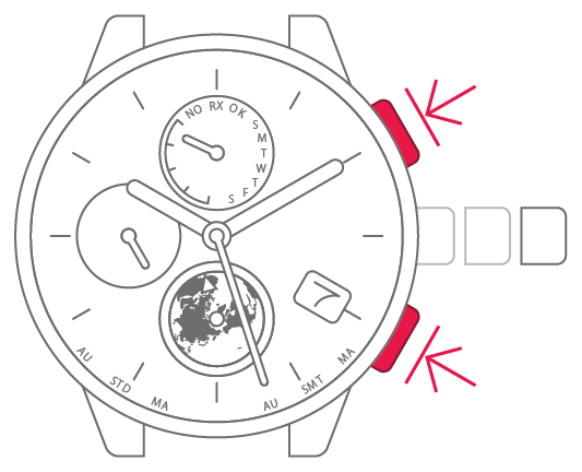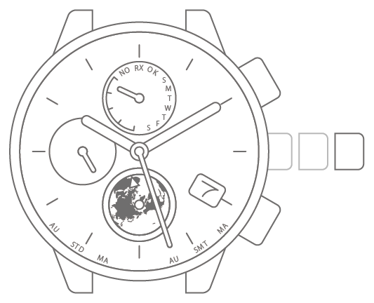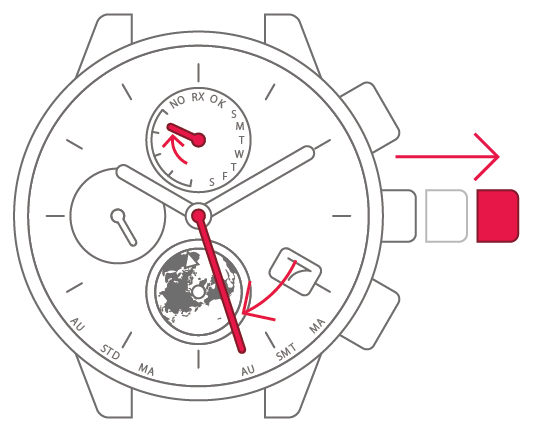 If you turn the crown quickly, the second hand continues moving. To stop this, turn the crown just slightly.