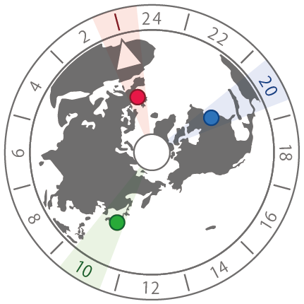 | ● Tokyo | 10 | Approximately 10.00 am |