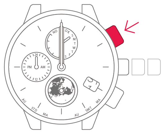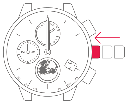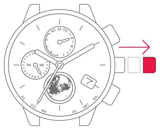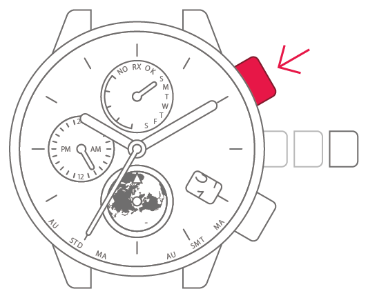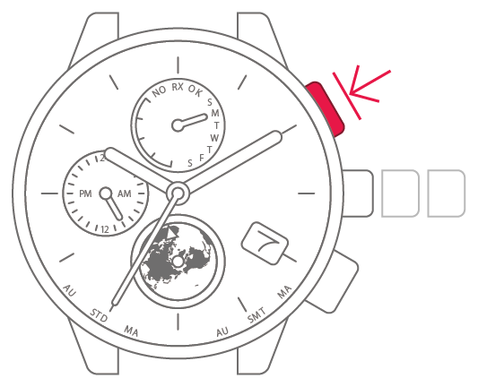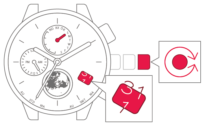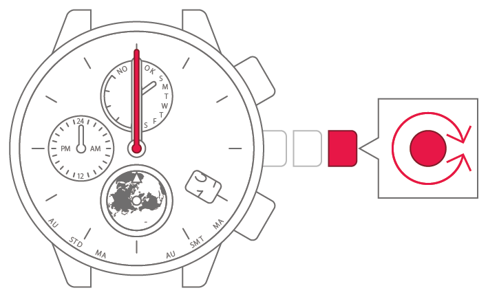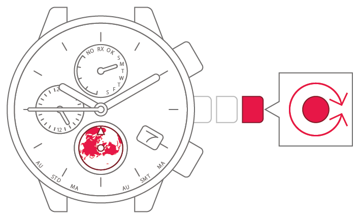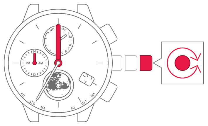 If you turn the crown quickly, the second hand continues moving. To stop this, turn the crown just slightly.