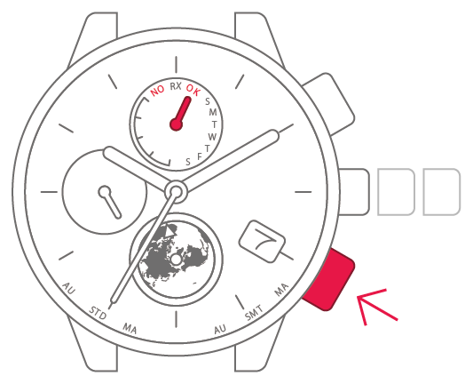 | The second hand points to “OK”. | Signal reception has succeeded. |