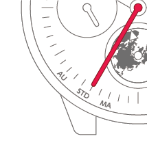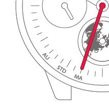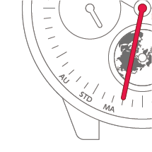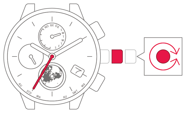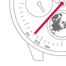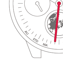 | The second hand points to “STD AU (Auto)” or “STD MA (Manual)”. | Standard time |