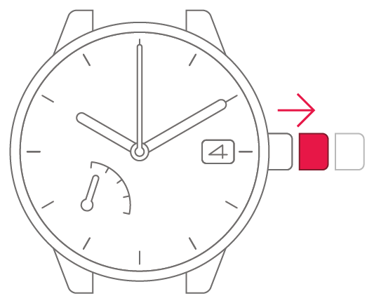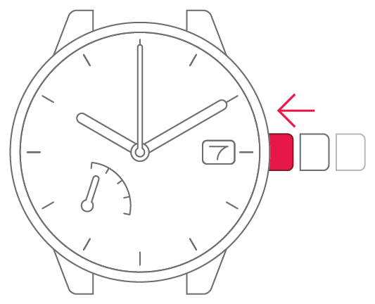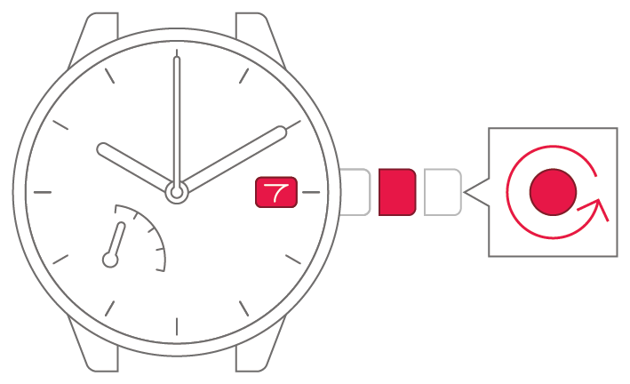 Do not carry out this operation when the time on your watch is between 9.00 pm and 1.00 am. Doing so could interfere with correct date display.