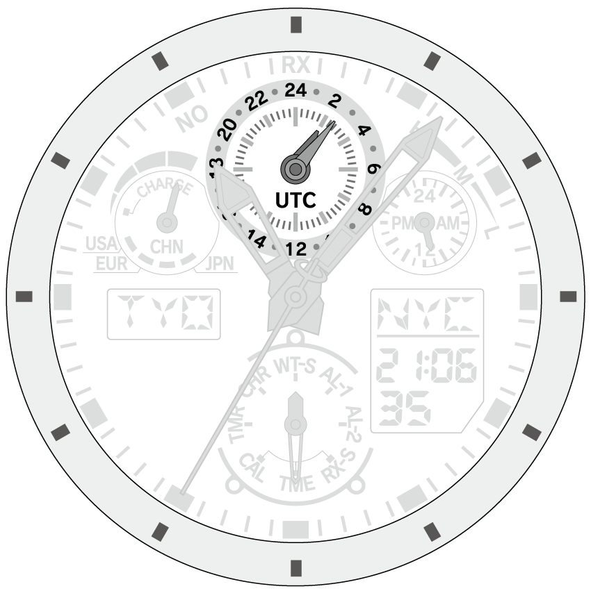 | UTC indication | Always shows the time of UTC (Coordinated Universal Time). |