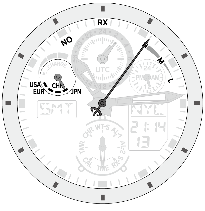 - Rotate the crown to set the mode hand to [TME] or [CAL].