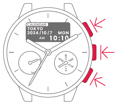 | Hour | Press and release upper-right or lower-right button to change. | ![]() |