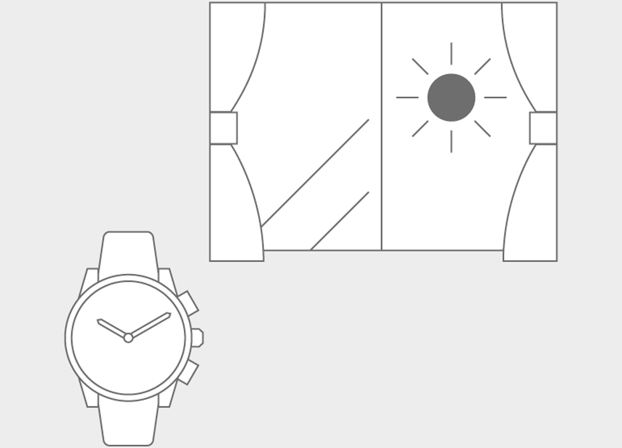 To charge the watch, leave it by a window so that the dial is exposed to direct sunlight.