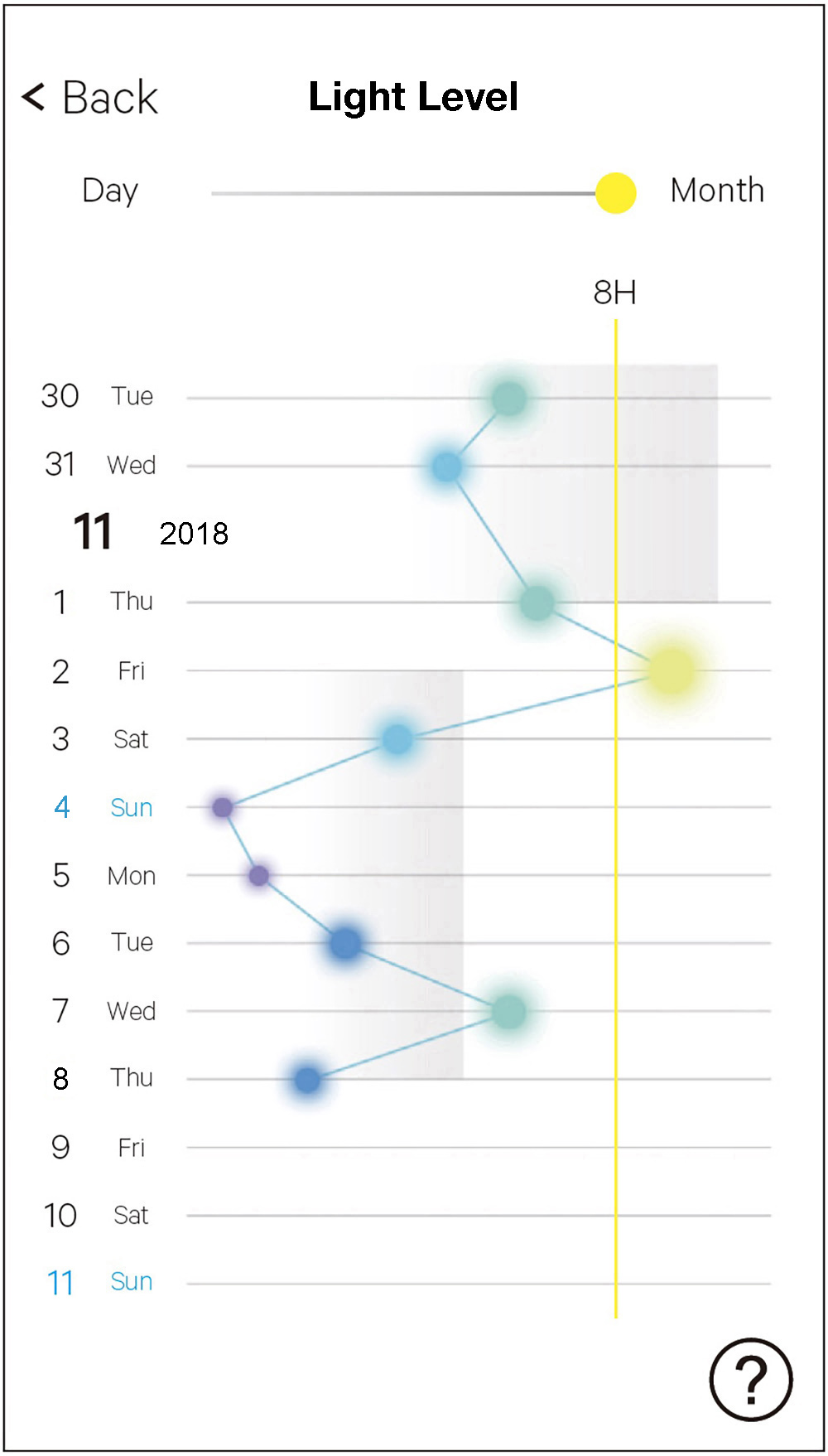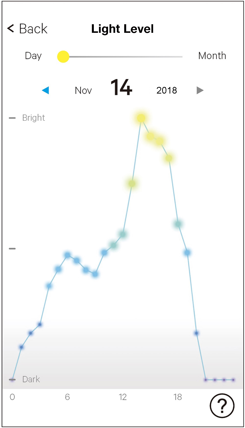 Tapping the [Light Level] icon on the home screen switches it to the [Light Level] screen.