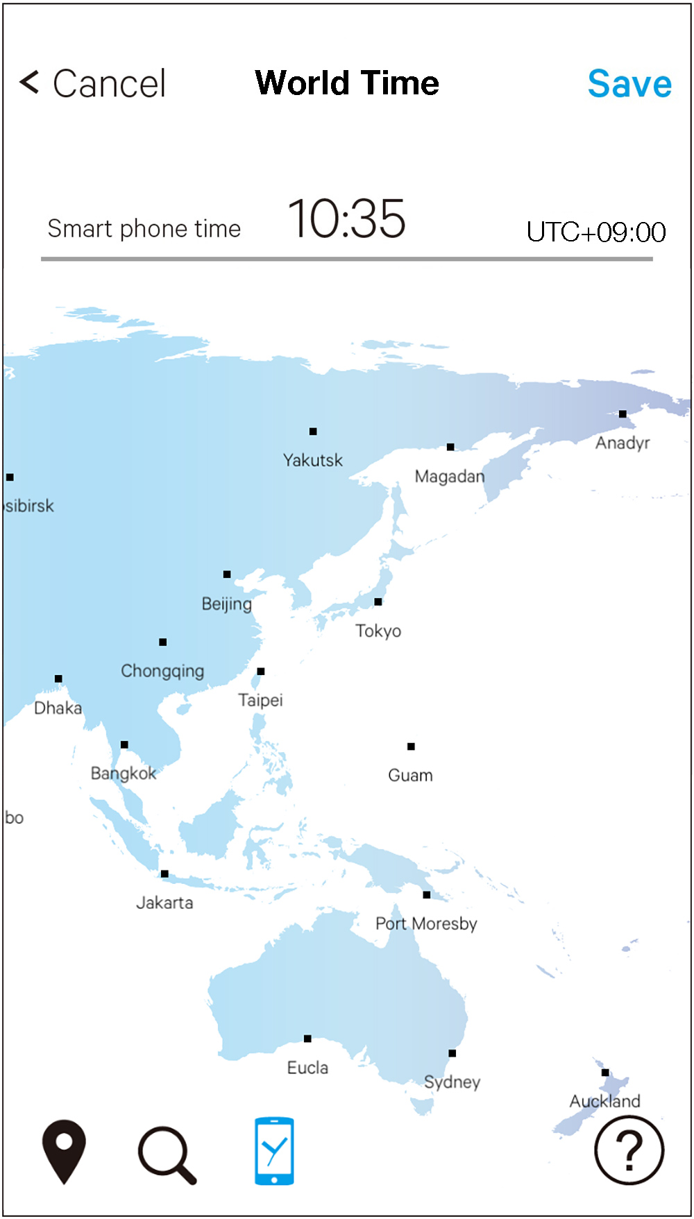 - Tap the smartphone icon on the lower left of the [World Time] screen.