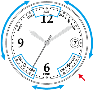 - Rotate the crown to make the second hand point the flight mode setting (