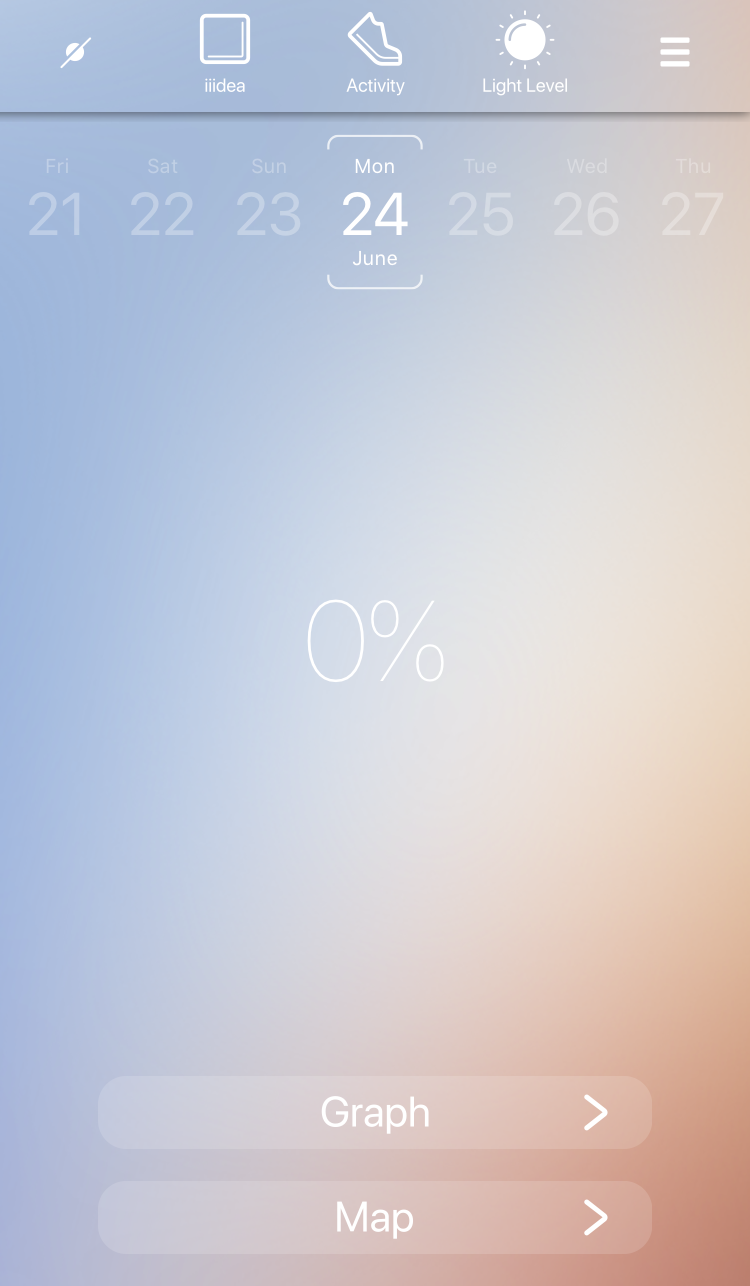 - Tap [Light Level] on the top of the home screen of the dedicated app.