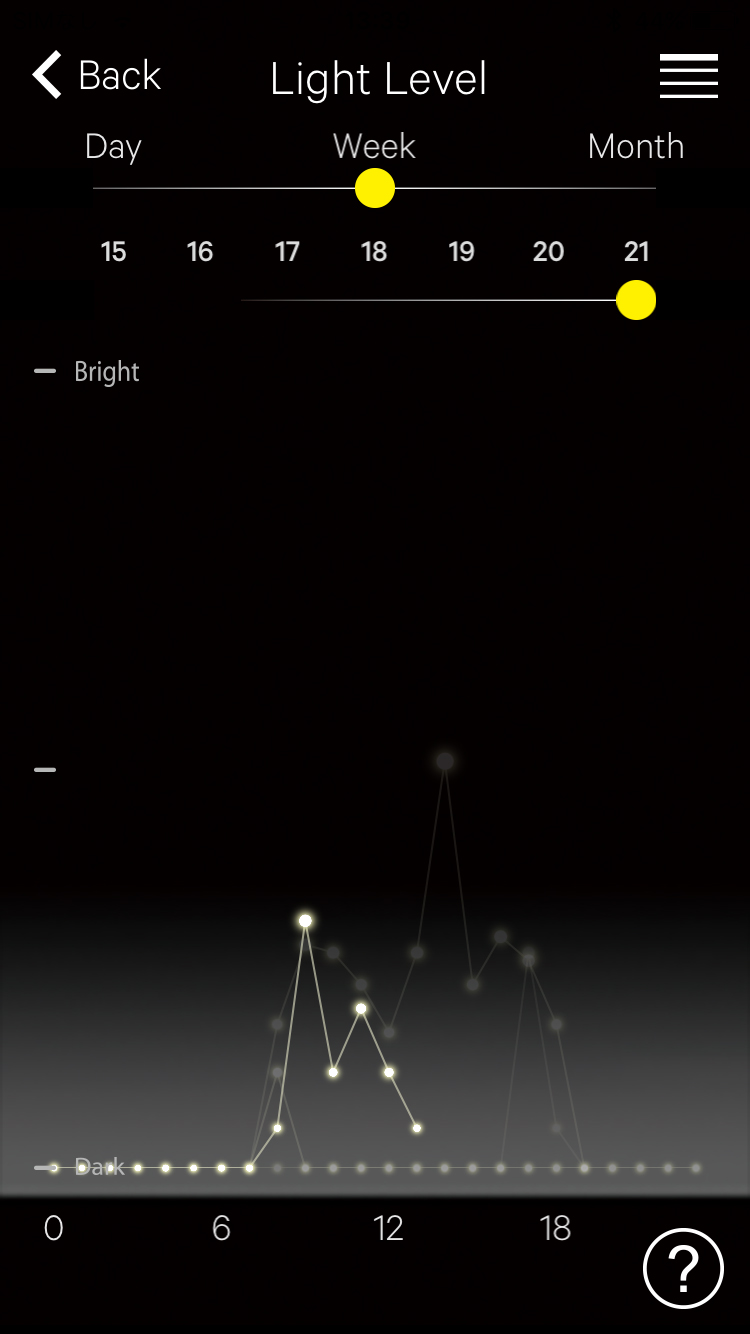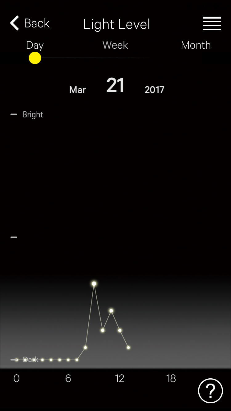 You can see the record of power generation amount of the watch in a line graph on the "Light Level" screen.