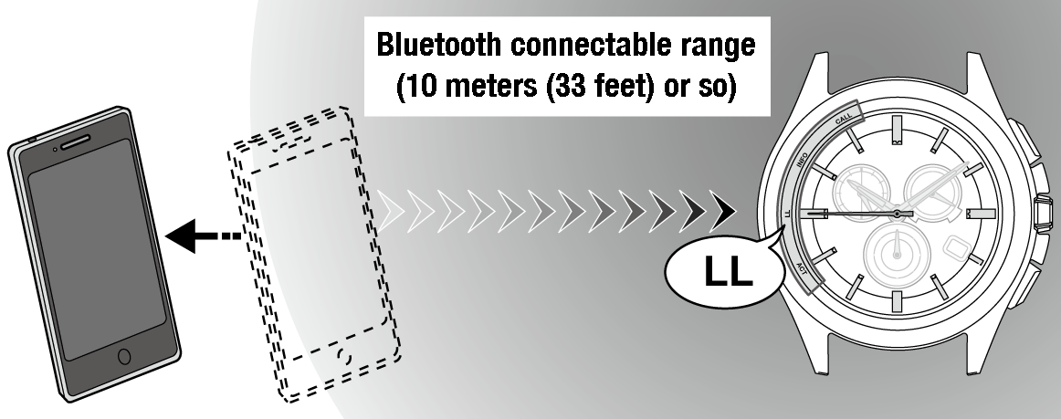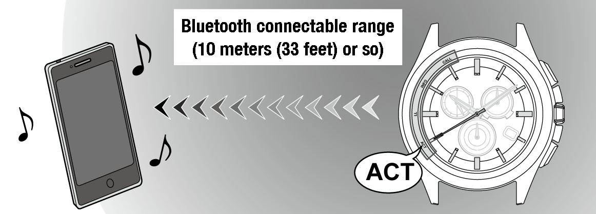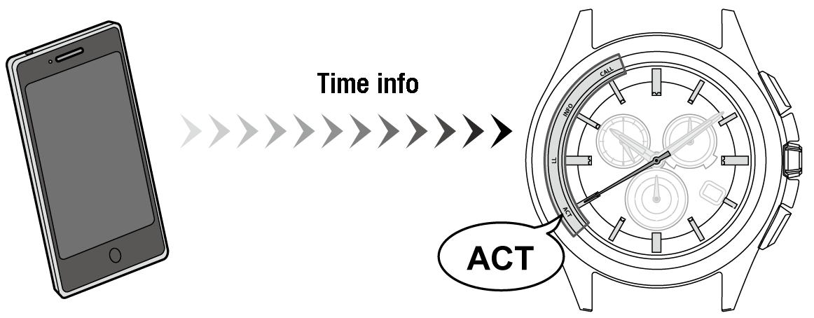 The watch adjusts time and calendar automatically using time info provided from the smartphone.