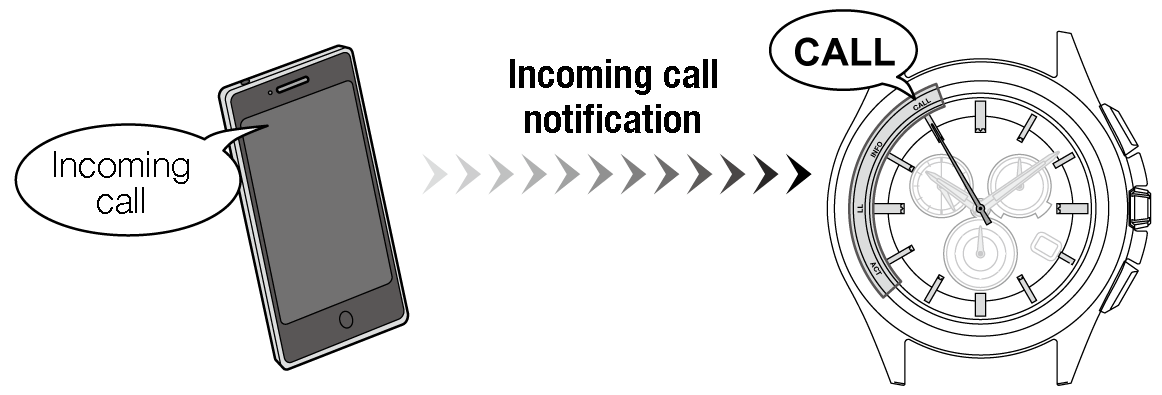 Incoming call notification comes to the watch as your smartphone receives a call.