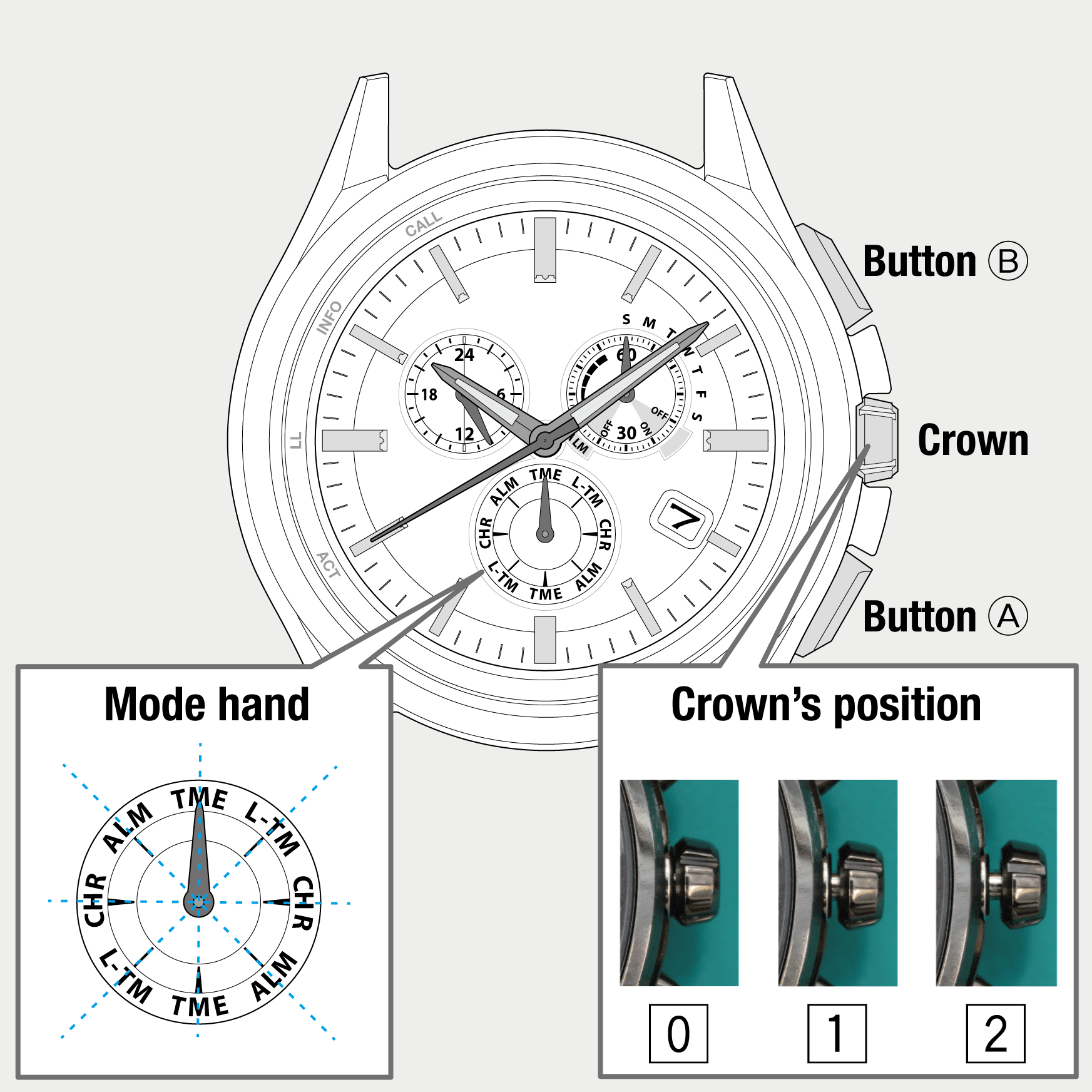 Turn the crown so that the mode hand will point to a marker of the mode indication securely.