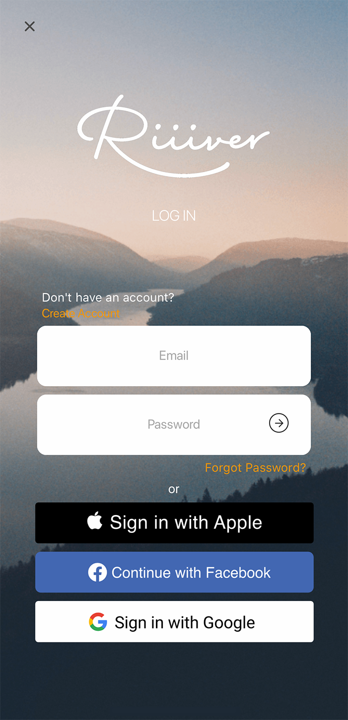 3 Create a Riiiver account using a mail address of you or your Google/Facebook account or Apple ID.