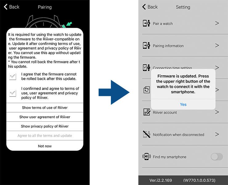 Update of the watch is completed and it becomes compatible with Riiiver.