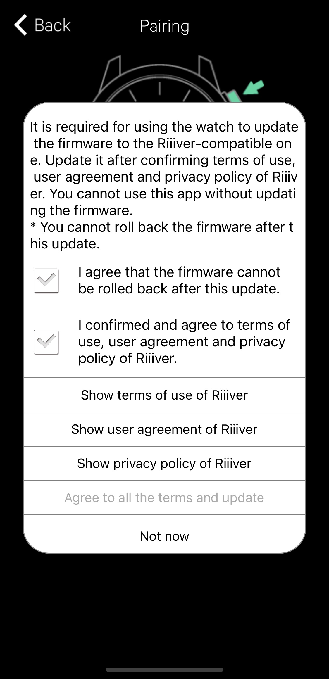 When executing this firmware update, check ang agree with all the terms, apply check marks on all items and tap “Agree to all the terms and update”.