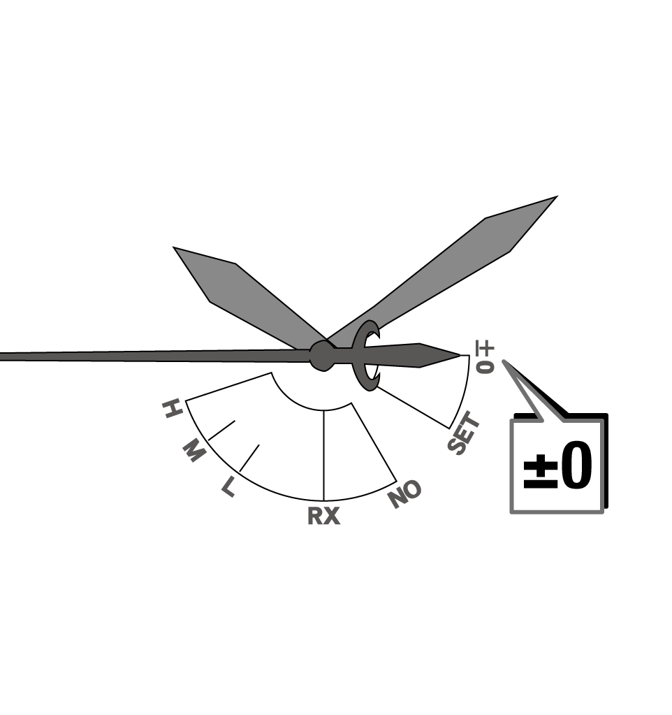 Lassen Sie den Knopf los, wenn der Sekundenzeiger auf „±0“ zeigt.