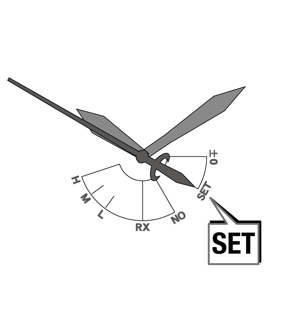 Der Sekundenzeiger zeigt auf „±0“ und die Einstellung des Zeitunterschieds wird gelöscht.