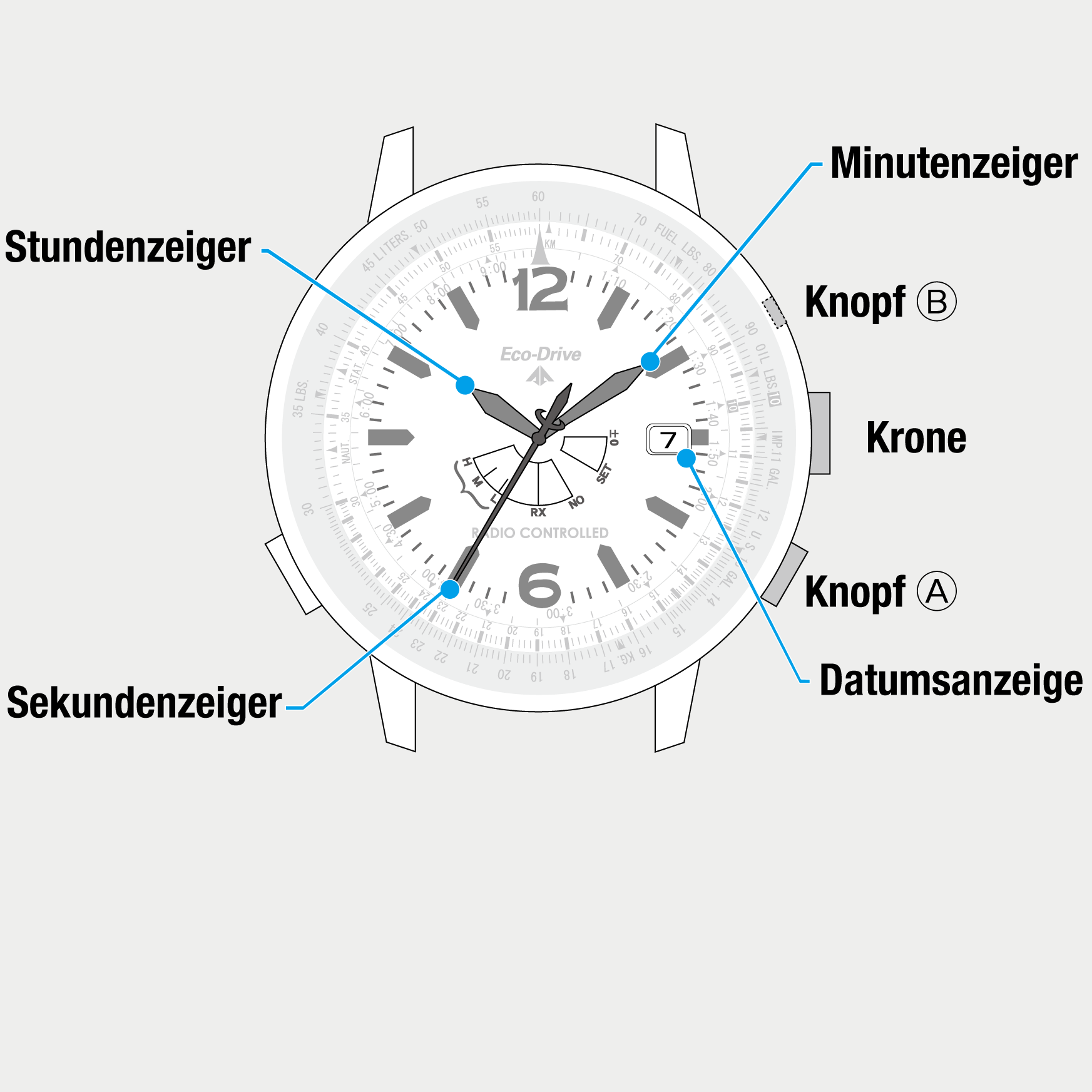| Laufzeit | Wenn die Uhr vollständig aufgeladen ist, läuft sie ohne weiteres Aufladen: Etwa 2 Jahre (wenn Energiesparfunktionen aktiviert sind) Gangreserve nach Warnung für unzureichende Ladung: Etwa 6 Tage |