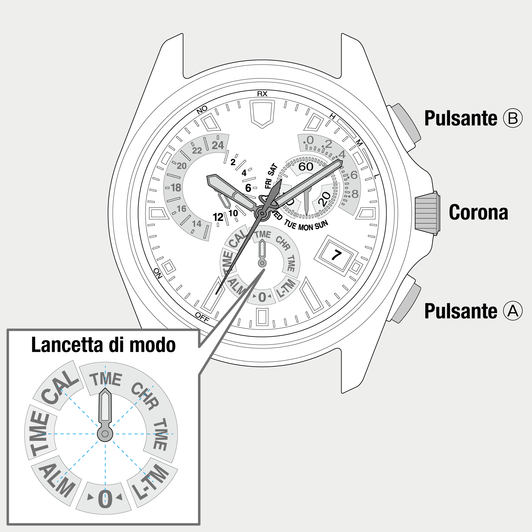 | CHR | Selezionarla per la misurazione con il cronografo. | |