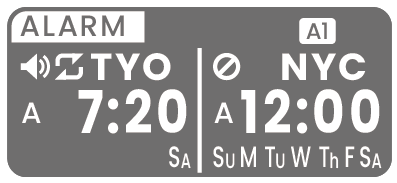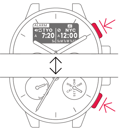 | Horas | Pressione e solte o botão superior direito ou inferior direito para alterar. | ![]() |