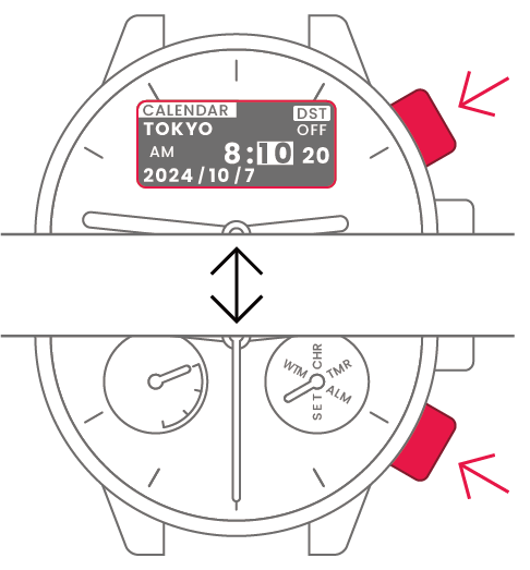 | Horas | Pressione e solte o botão superior direito ou inferior direito para alterar. | ![]() |