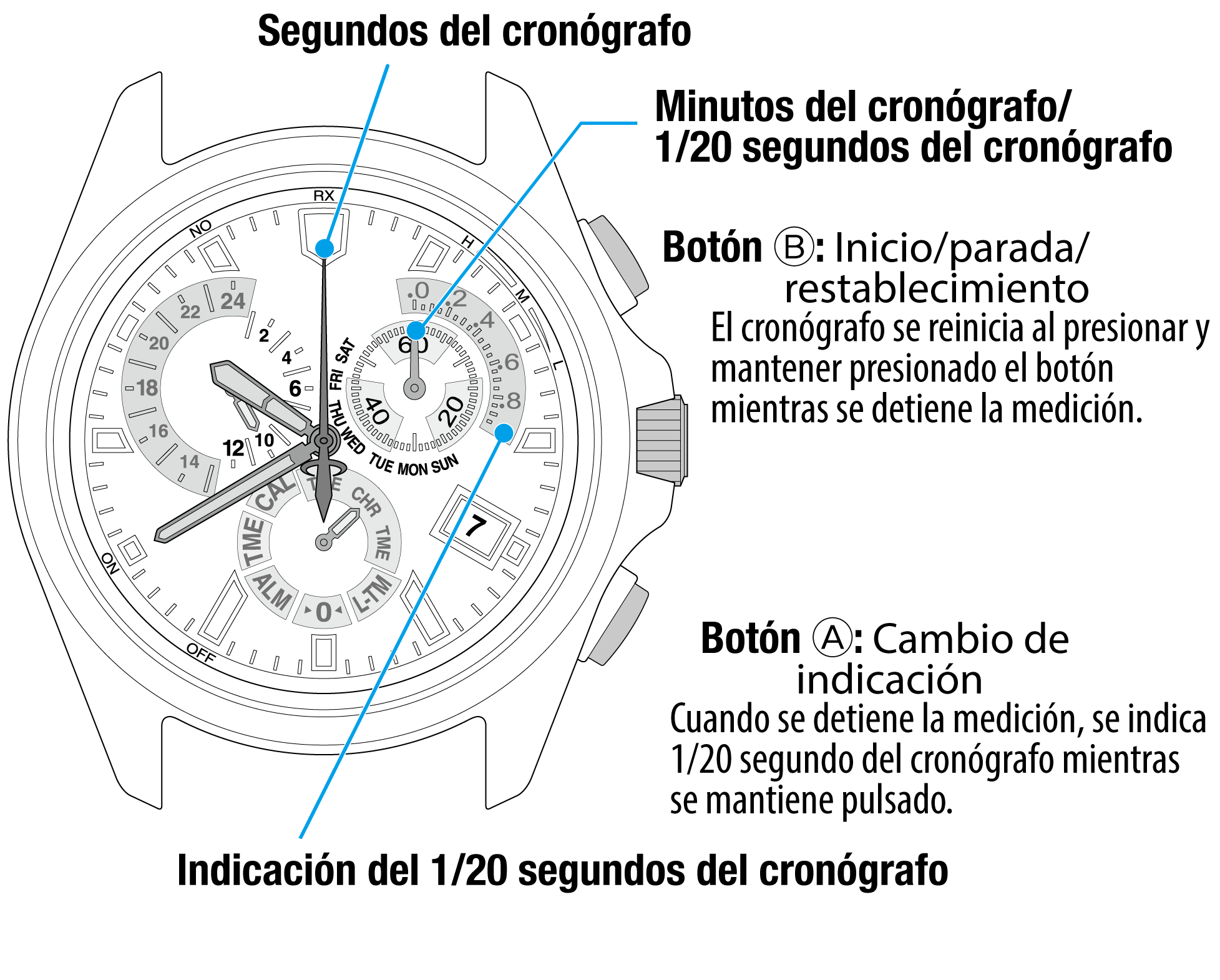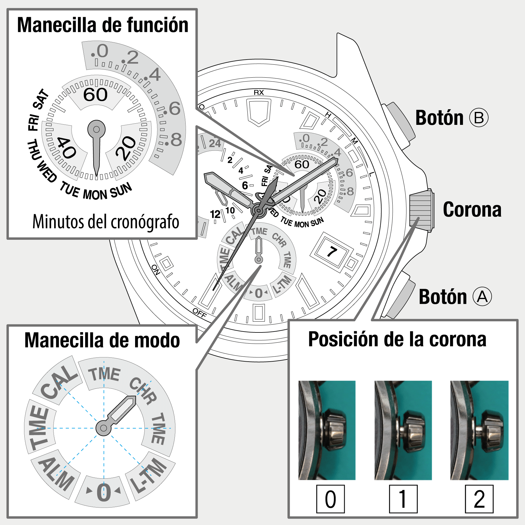 - Gire la corona para establecer la manecilla de modo en «CHR».