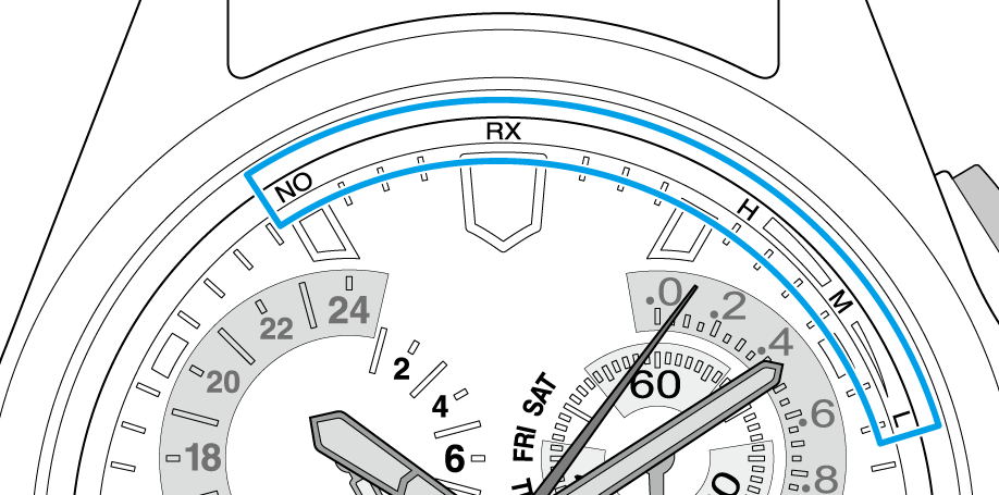 - Gire la corona para establecer la manecilla de modo en «TME» o «L-TM».