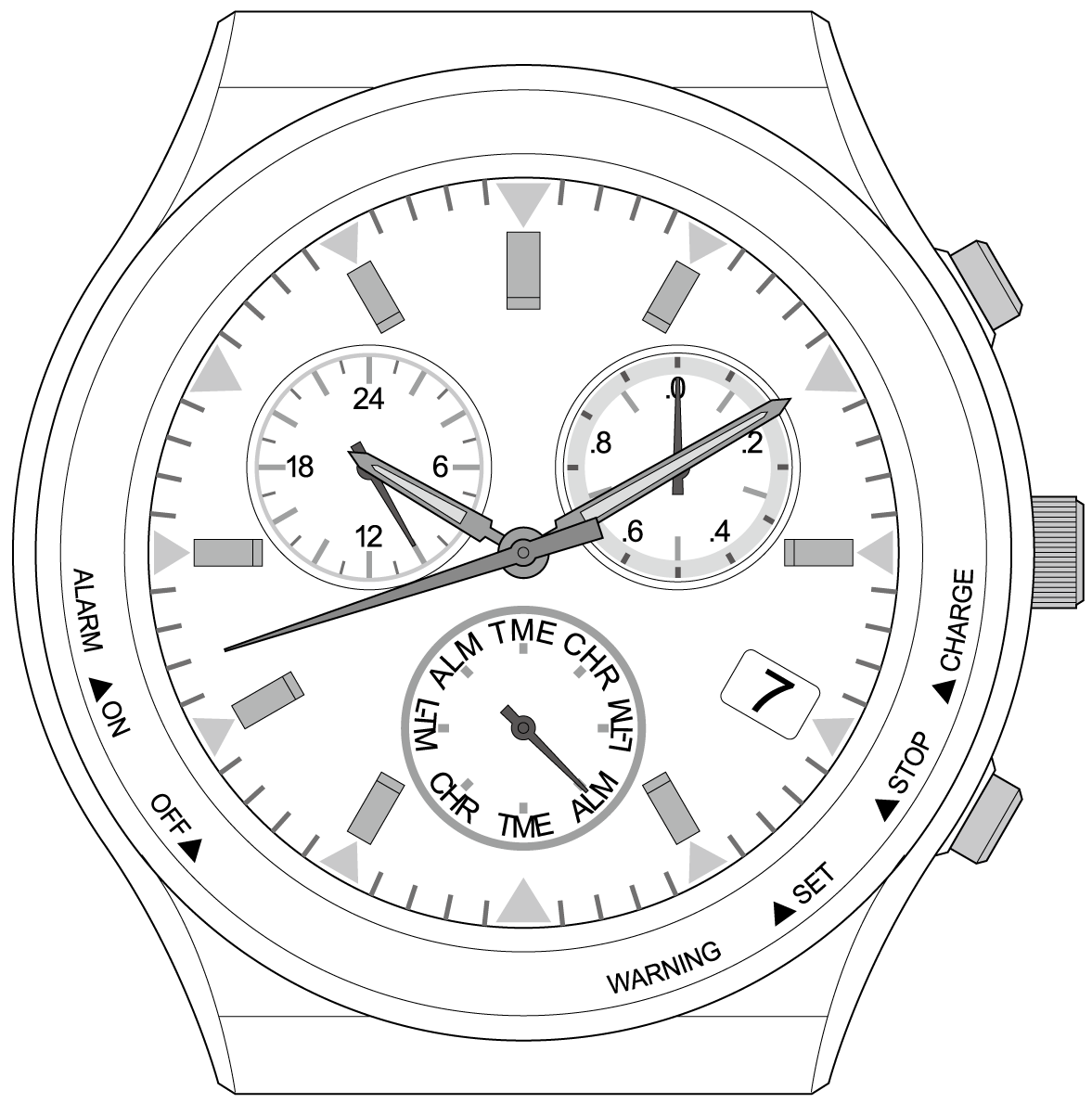 - Gire la corona para establecer la manecilla de modo en [ALM].