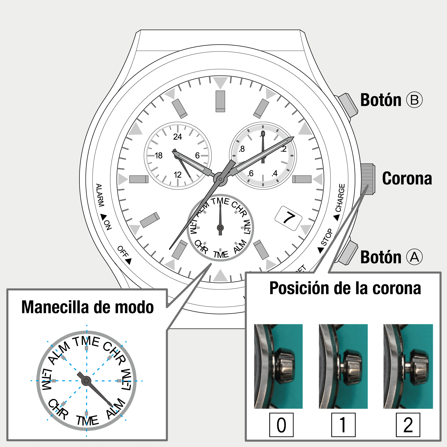 - Tras finalizar el ajuste, empuje la corona hasta la posición 0.