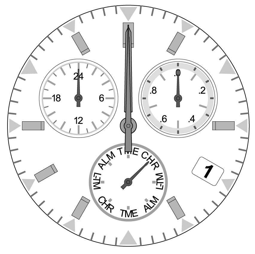 - La posición de referencia es la posición de base de todas las manecillas y el calendario para indicar de forma adecuada las diversas funciones de este reloj.