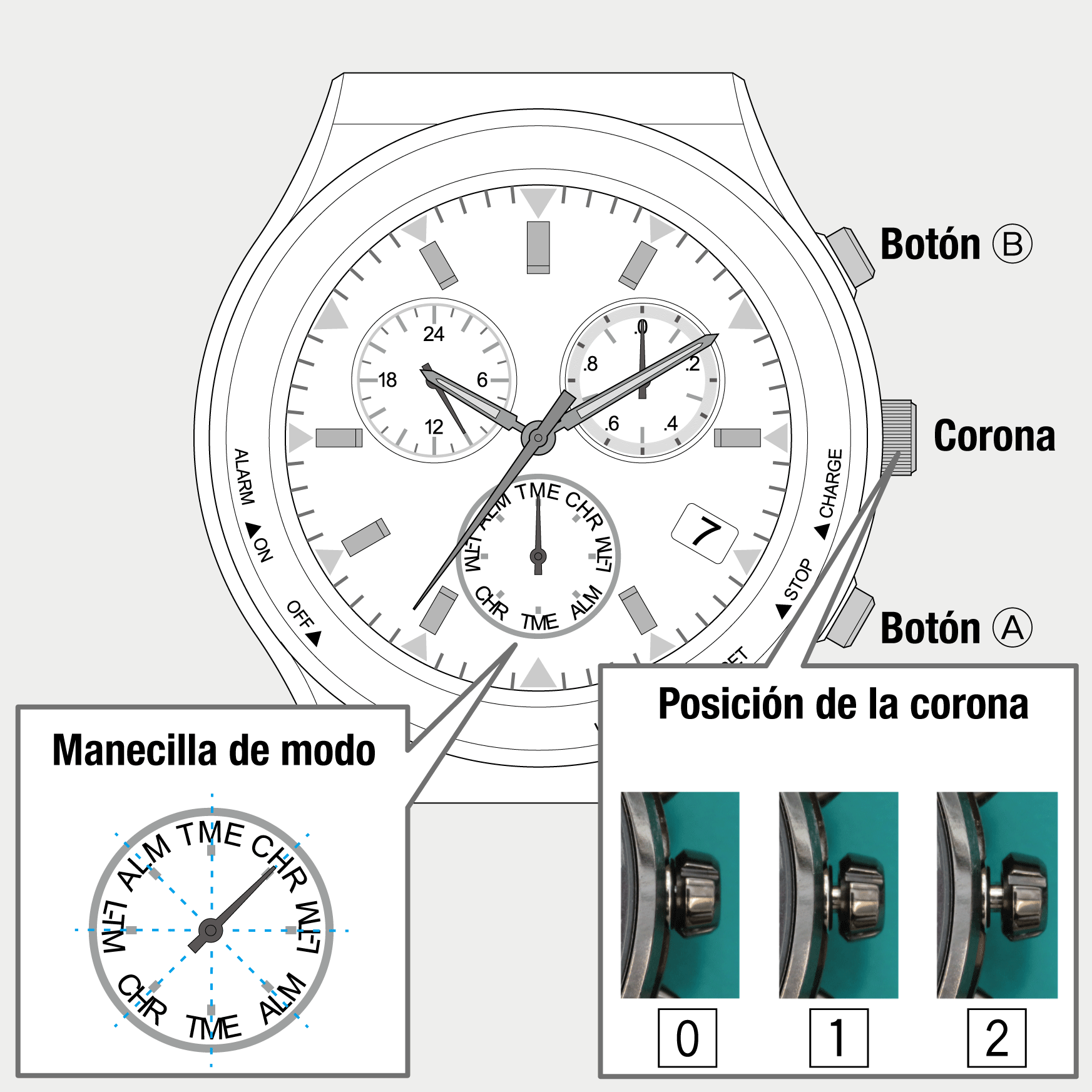 - Gire la corona para establecer la manecilla de modo en [CHR].