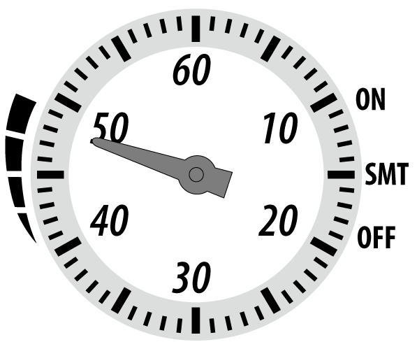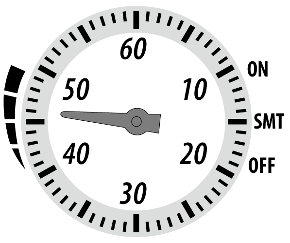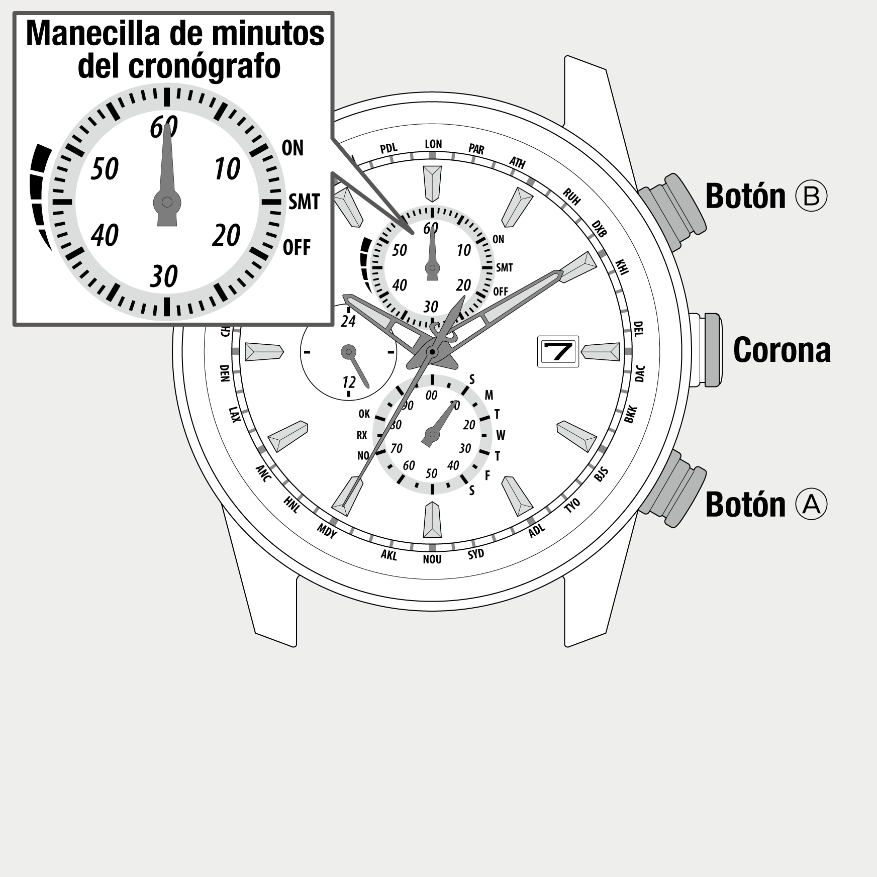 - Cuando la reserva de energía llega al menos al nivel 1, la manecilla de minutos del cronógrafo indica automáticamente la reserva de energía.