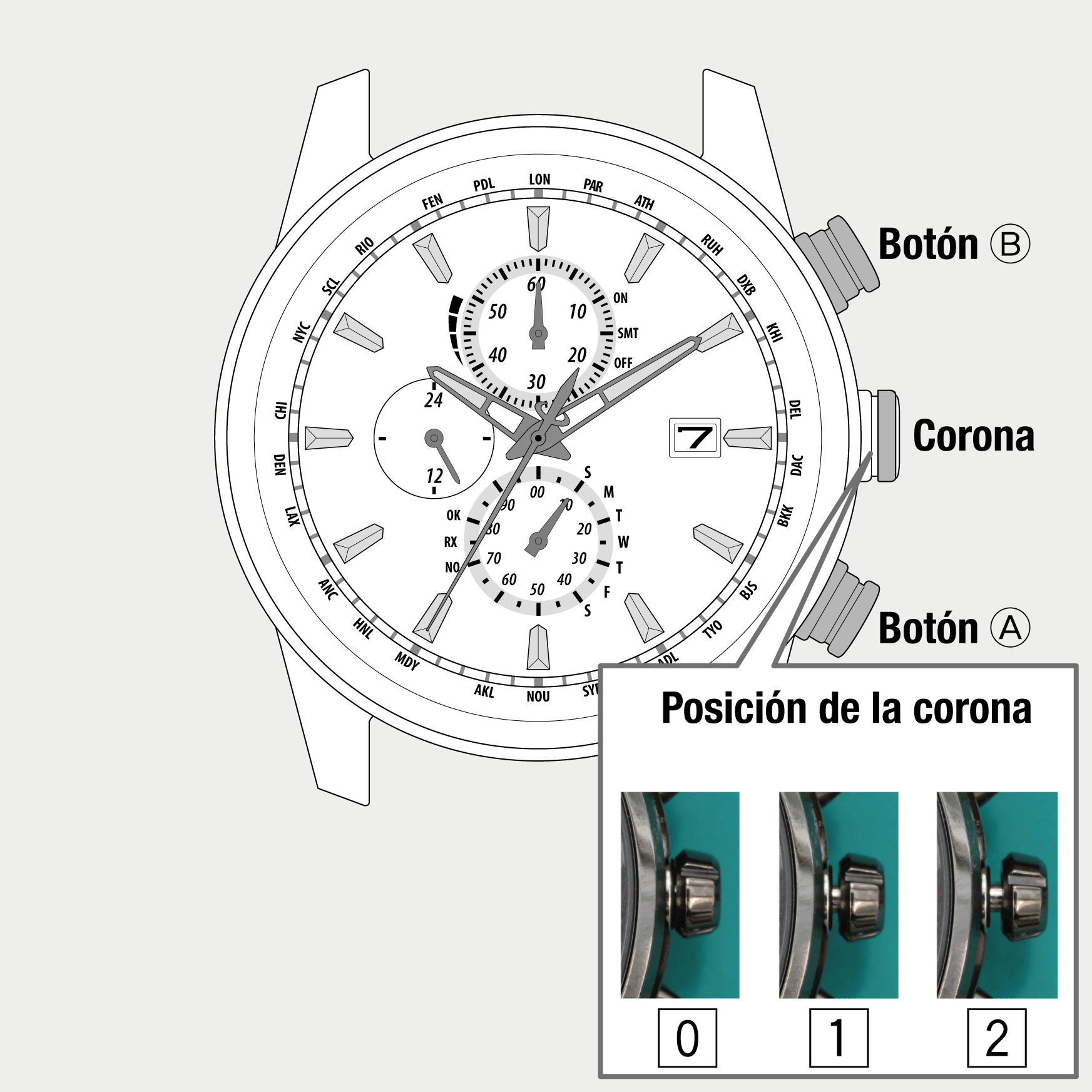 Las manecillas y la indicación pueden moverse rápidamente cuando el reloj vuelve a la indicación normal.
