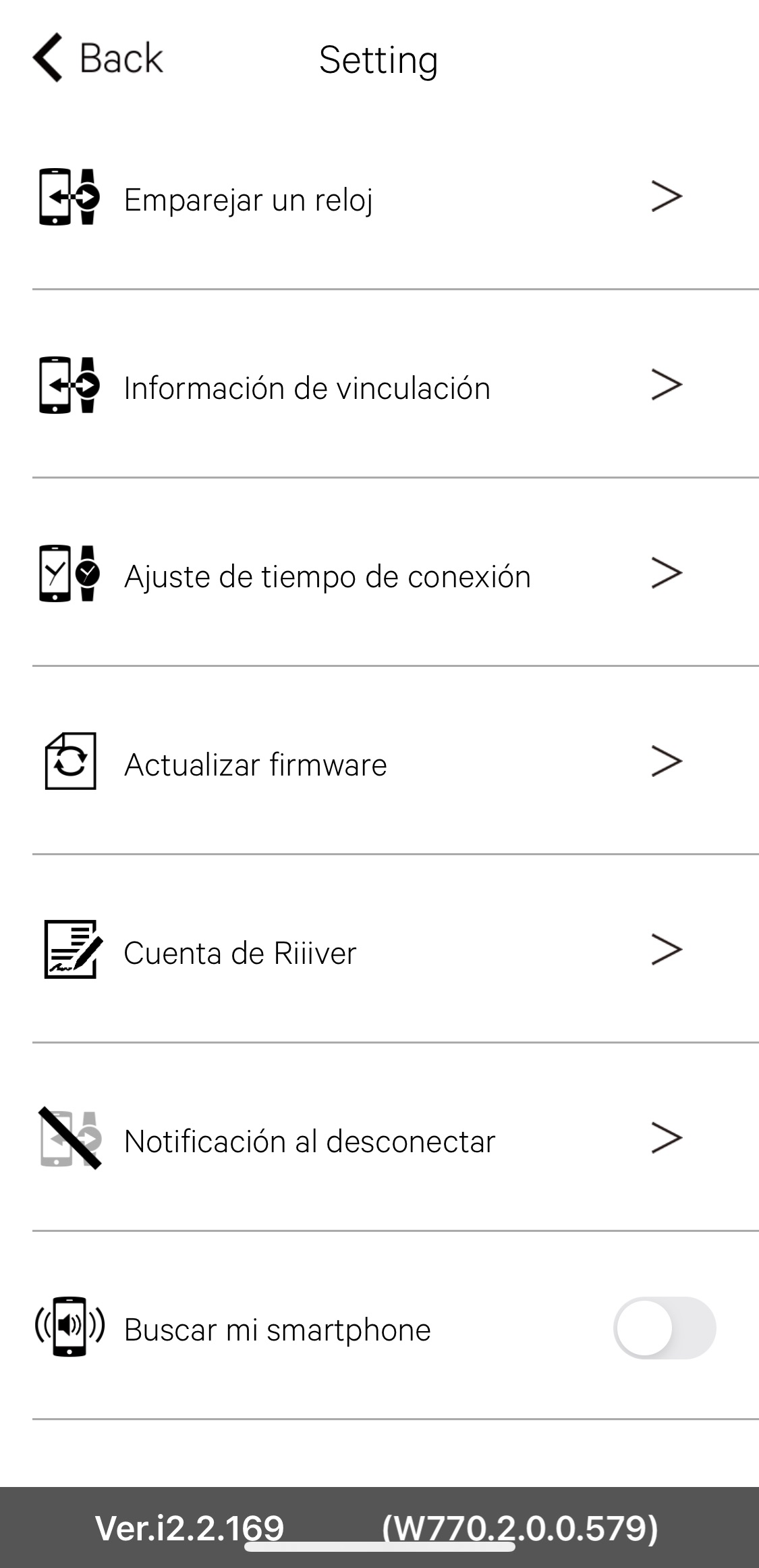 | Información de vinculatión | Permite comprobar los smartphones registrados en el reloj. | |