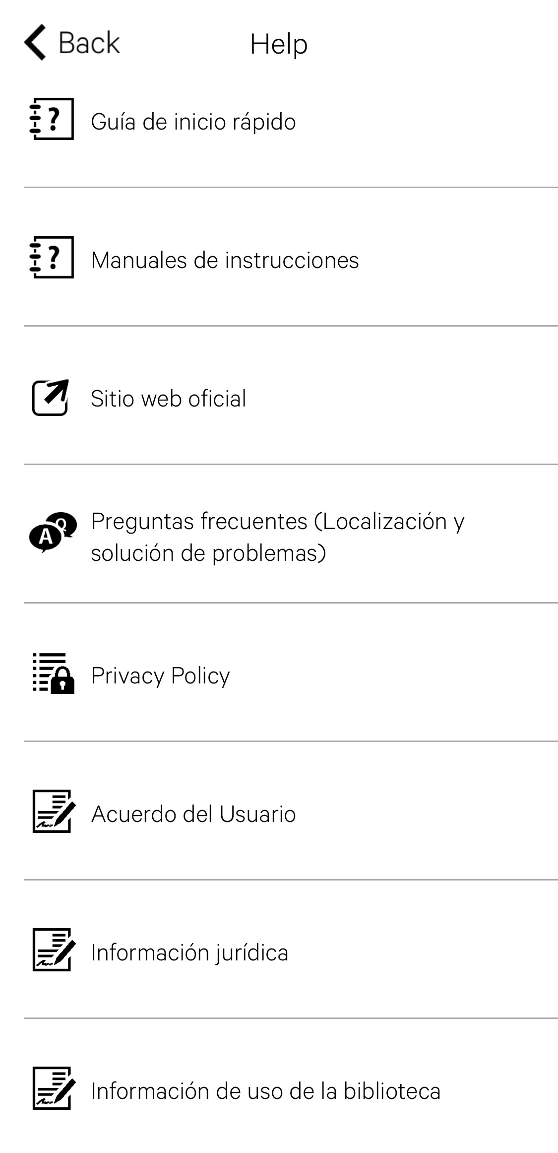 | Pantalla «Help» | Ver pantalla ⇓ |