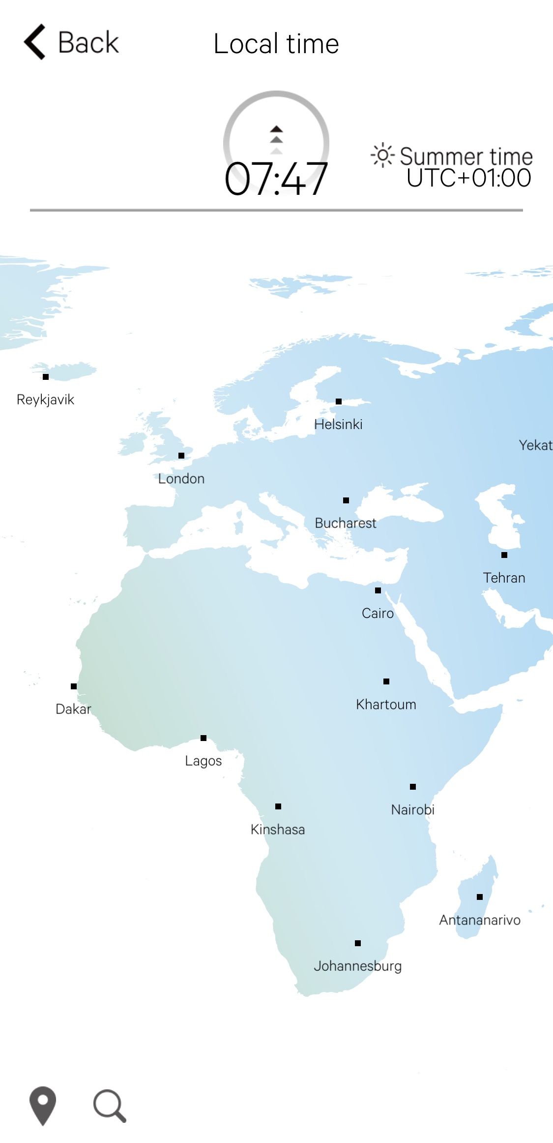- Tras finalizar el ajuste, toque el icono situado en la parte superior de la pantalla «Local Time» (icono de envío).