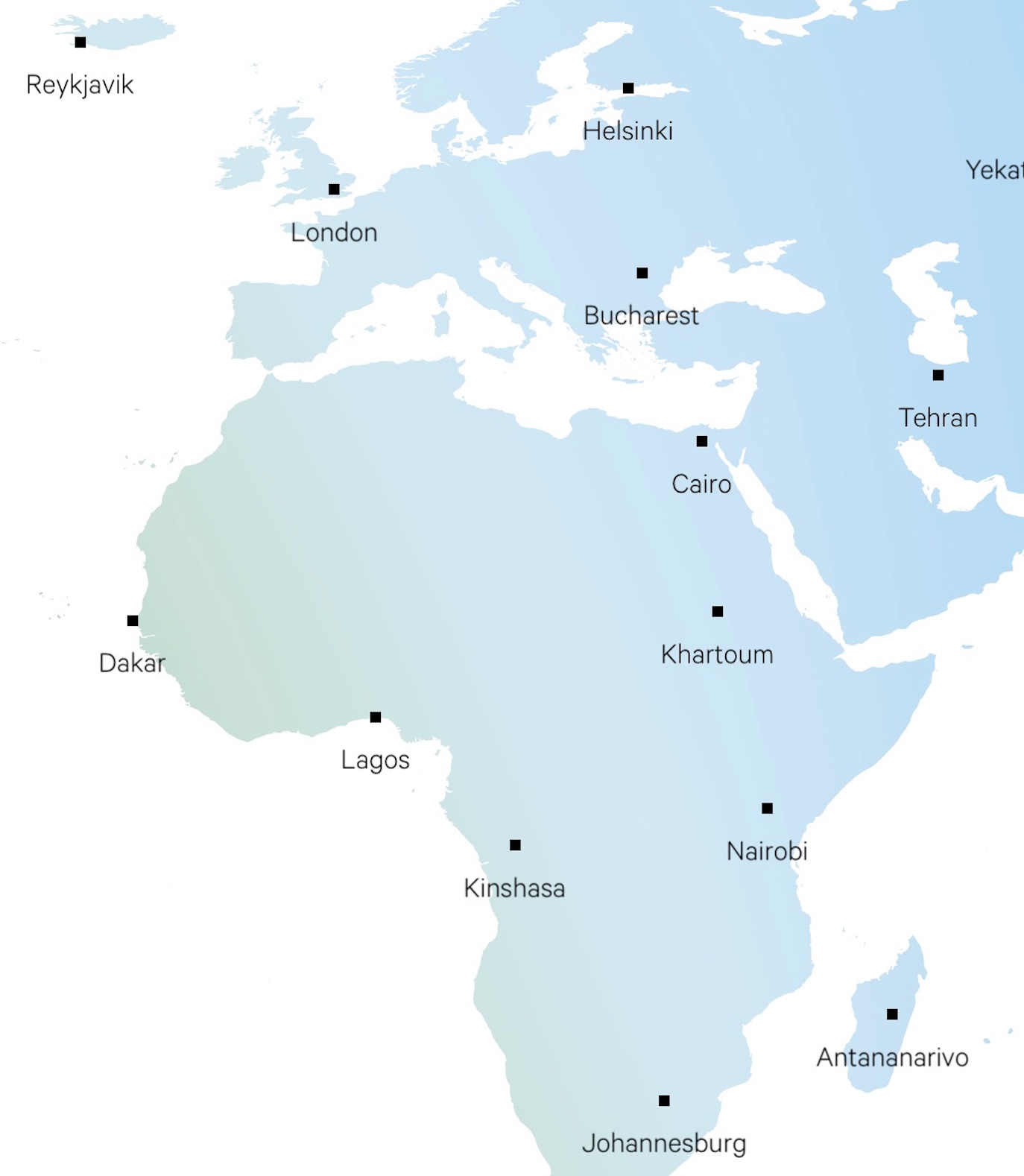 Desplácese por el mapa y toque un área para establecer un huso horario. | |