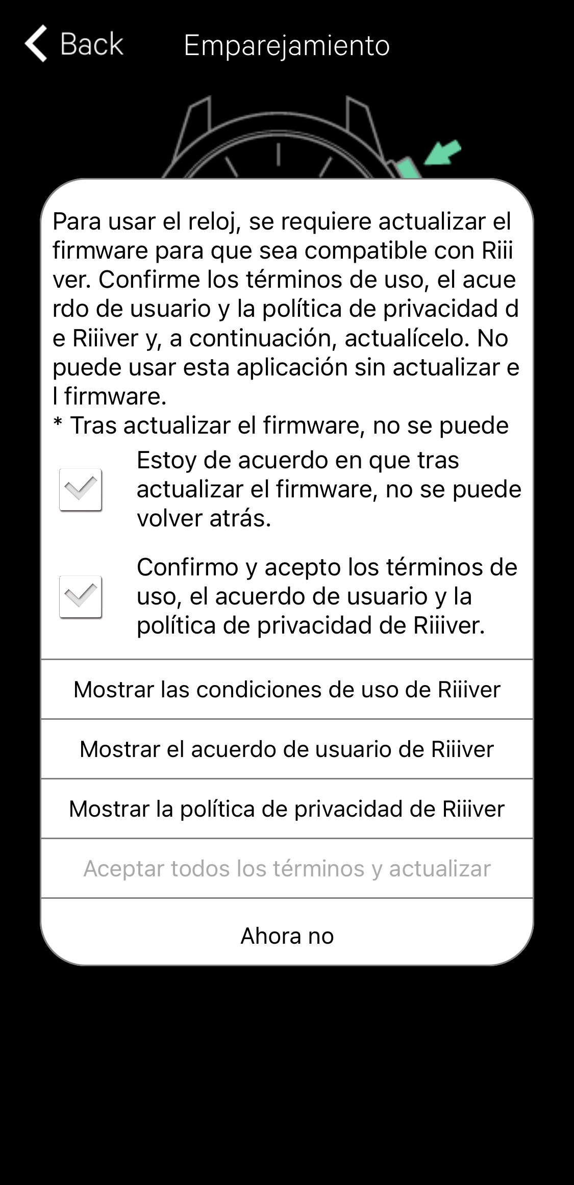 Debe ejecutar esta actualización de firmware para conectar el reloj y el smartphone a través de la aplicación específica «CITIZEN Eco-Drive W770».